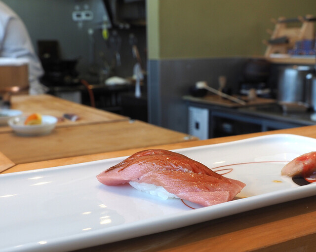 寿司の名店で経験を積んだ店主がご提供するのは、旬の食材にこだわった握りと一品料理の数々。時期によって内容が変わるコースもおすすめ◎全国各地から厳選した日本酒とご一緒にどうぞ。一面ガラス張りの和空間には、カウンターとテーブル席を完備。記念日のお祝いや会食はもちろん、おひとり様での晩酌、2軒目としてなど幅広いシーンで気軽にご利用ください。