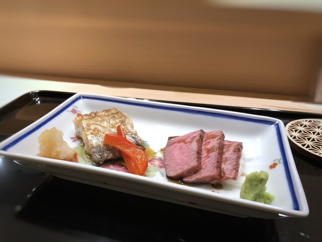◆太刀魚の塩焼きと牛肉の昆布〆