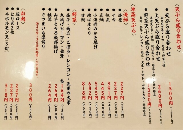 | ジャンル | 天ぷら、居酒屋、海鮮 |