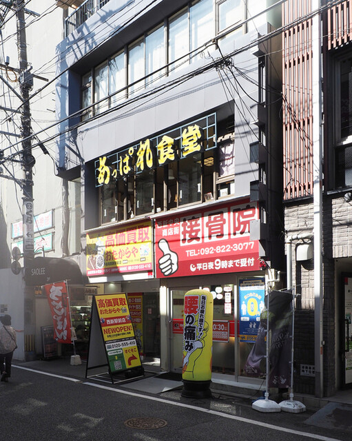 平日昼間から賑わう西新商店街。 今回のランチは "ちゃんぽん" が人気の「あっぱれ食堂」さん。 久しぶりにテンコ盛り野菜の一杯が頂きたく、訪問しました。 場所は福岡市地下鉄「西新」駅4-B出口から徒歩1分以内という好立地なロケーション。 お店は2階にあり、デカデカと「あっぱれ食堂... 詳細を見る