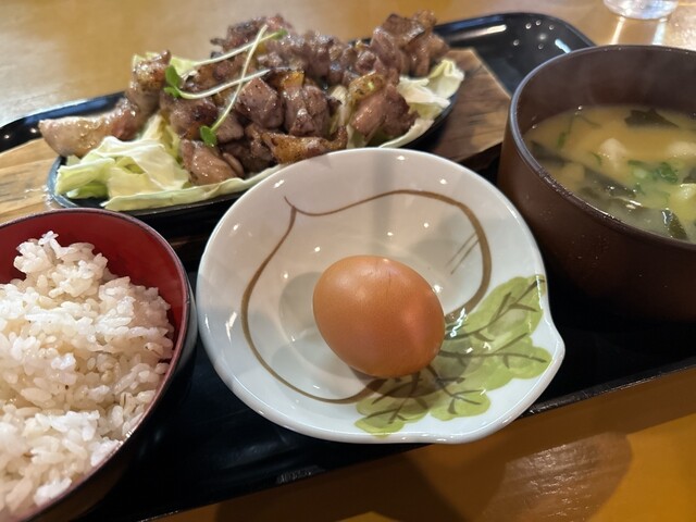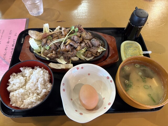 2年ぶりに訪問しました。 少し値上がりしてましたが、まだまだコスパは良いと思います。 地鶏鉄板焼き大盛りを注文(生卵付き) 確か1400円だったと思います。 焼くのに時間がかかるので、約15分で料理が運ばれて来ました。 地鶏も凄く噛みごたえがありとても美味しかったです。 柚子胡椒が付いて... 詳細を見る