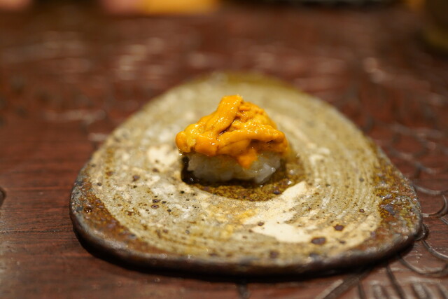郊外の幹線道路沿いにひっそりと佇みながら、全国からわざわざやってくる名うての食通たちを唸らせている天ぷら店。最大の特長は、天ぷらの前に季節の鮮魚を使った前菜や握り鮨、茶碗蒸しなど丹念な仕事が施された逸品料理をたっぷりと味わえること。独学で研究を重ねてきた天ぷらは、衣が極めて軽やかで、素材の旨みが口の中でパッと弾ける。天ぷら店の枠に留まらない独自スタイルの店である。