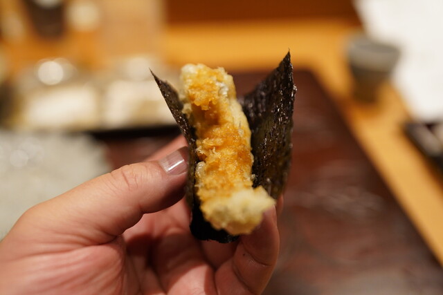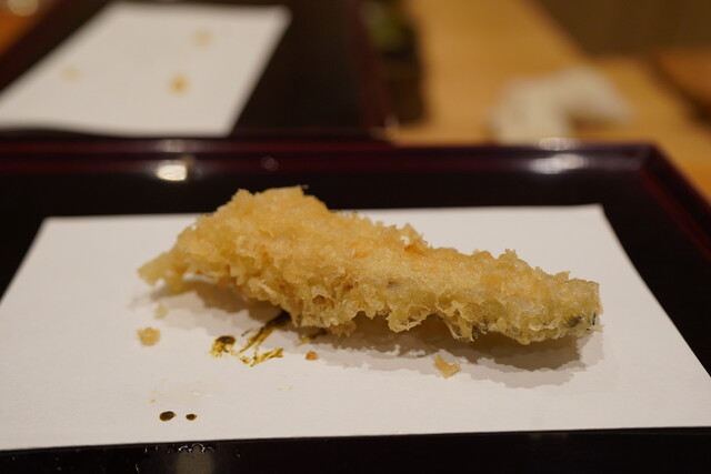 しかもこの穴子、目の前で店主が捌いてから揚...