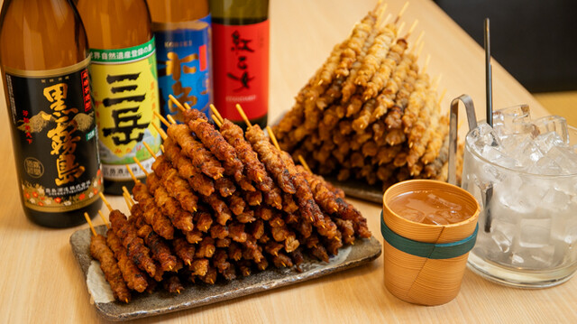 職人が1本1本焼き上げるこだわりの串が自慢の【二日市とりかわ きくや】。厳選した鶏の皮を使用し、タレ漬けと下焼きを繰り返しながら完成させる「とりかわ」は絶品です!その他1本120円~とお手頃な焼鳥やお酒に合うメニューも豊富ですので、地酒とご一緒にどうぞ◎1人飲みに最適なカウンターに加え、4~7名様まで着席可能な半個室も完備。お仕事帰りの宴会にぴったりの穴場となっておりますので、ぜひご来店ください♪