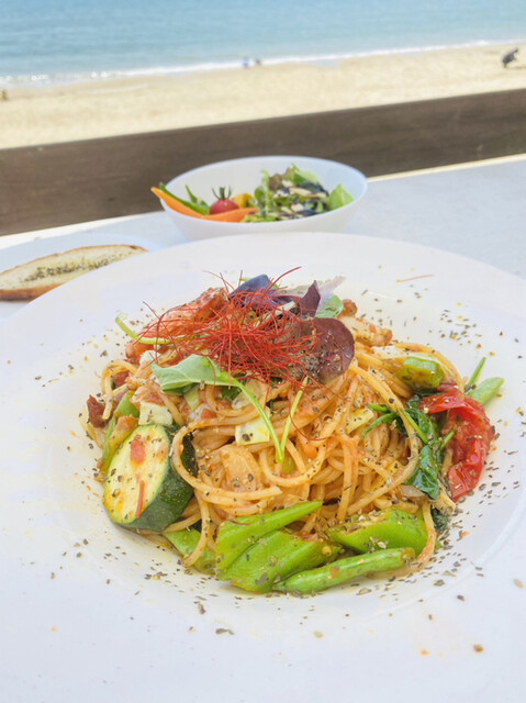 「スパイシーハーブチキン」 スープ、ライス、ドリンク付 ハーブ香るスパイシーなチキン、元気な野菜達。 どれも本当に美味しくて幸せだった! 海を眺めながら、のんびりラ... 詳細を見る