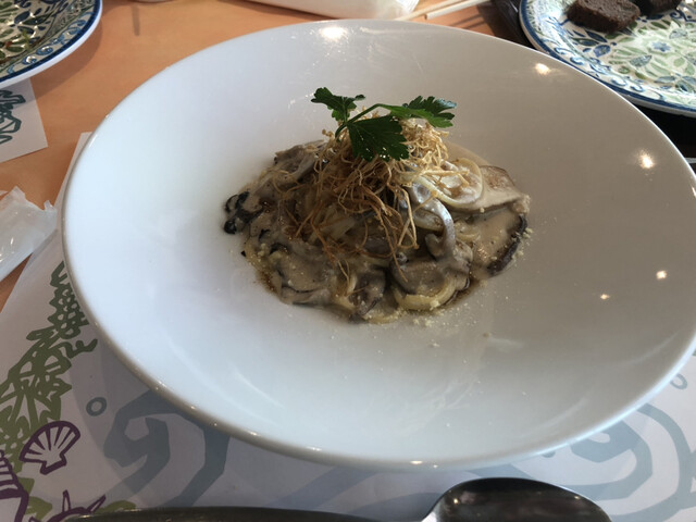 きのこパスタはえのきやエリンギなどをふんだんに使っていて、クリーム感が強い。麺もコシがあってなかなか美味しかった。