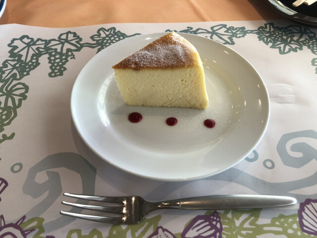 食後のデザートにチーズケーキが出てきた。冷えていて、美味しく頂けた。