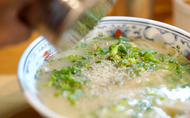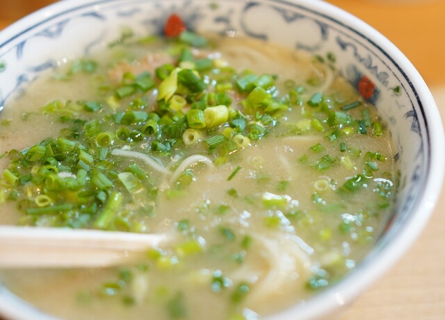 スープを一口。まず感じるのは、豚骨ラーメンらしい旨味と...