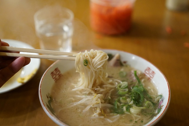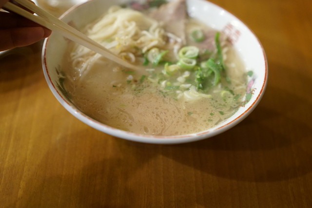 屋台のラーメンはめっきり少なくなりましたが、このお店ではその雰囲気、味覚が楽しめます。 魚町で一杯ひっかけて、いい気分で寄りたいお店です。
