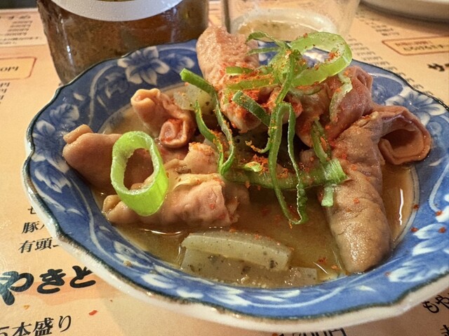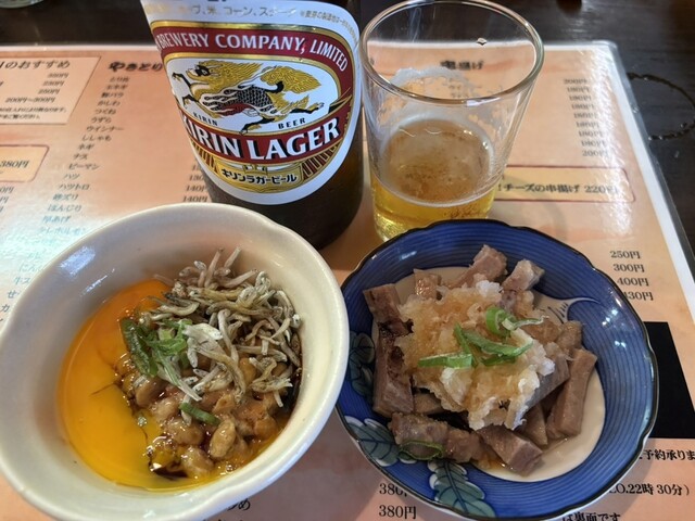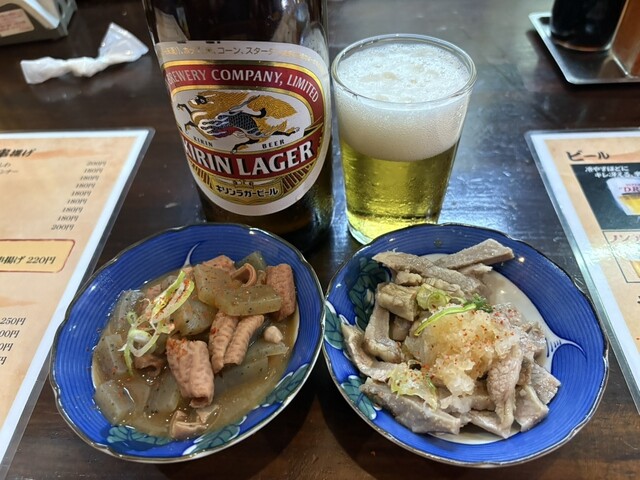 ツマミには、マグロ刺身350円、もつ煮込み220円を注文。