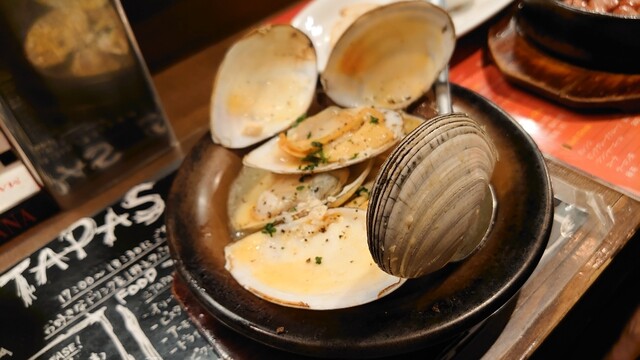 ワインや豊富ドリンクに相性抜群の小皿タパス(200円~)で楽しめるスペインバル!人気マッシュルーム陶板焼きは口に含むと鼻に抜ける薫りが逸品!冷えた白と合わせれば最高…パスタ・パエリア・アヒージョなど満腹メニューもご準備あり!通りからオープン、雰囲気満点の座席に広々個室も完備!仕事帰りのちょい呑みや女子会、デートにも♪ご予約はお電話にて...♪