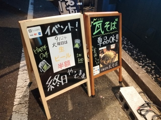 お店のポップにハッピーアワーの文字を見つけ来店。19時までは生ビールが250円 ハイボールは180円という安さで大ハッピーでした。食べ物も美味しく特に瓦そばは絶品でした。本格的な瓦そばが出てくるのでチ...
