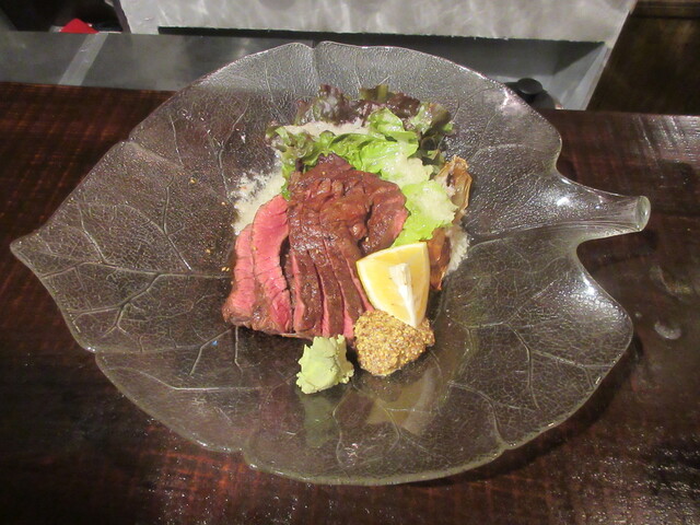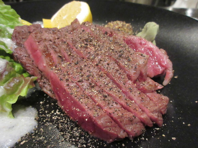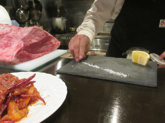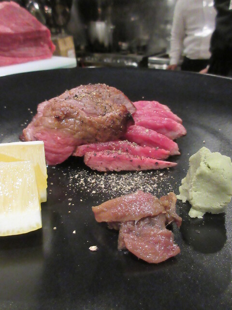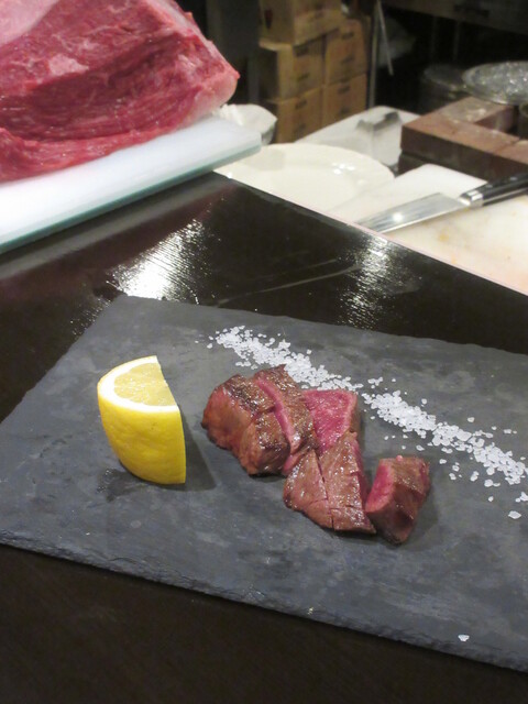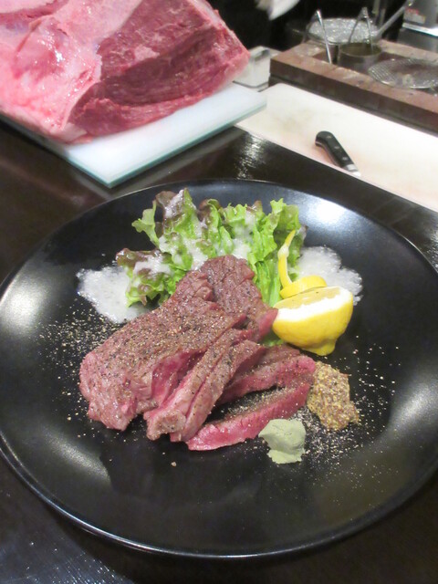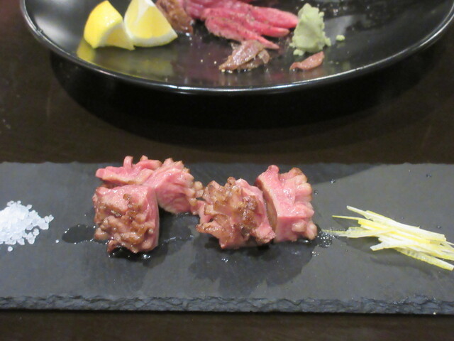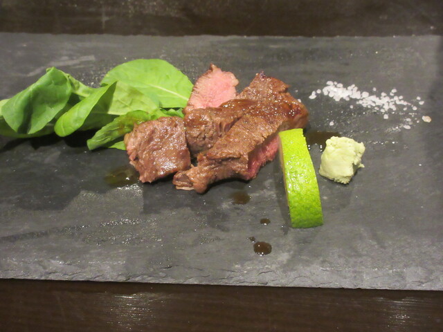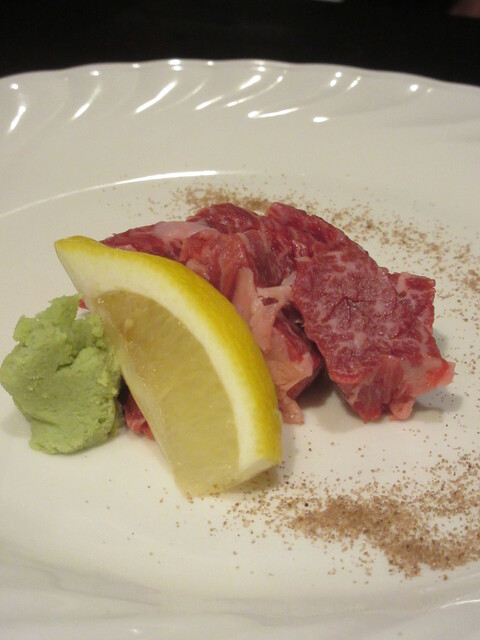 和牛頭肉、希少部位をレモンと山葵とワイン塩で