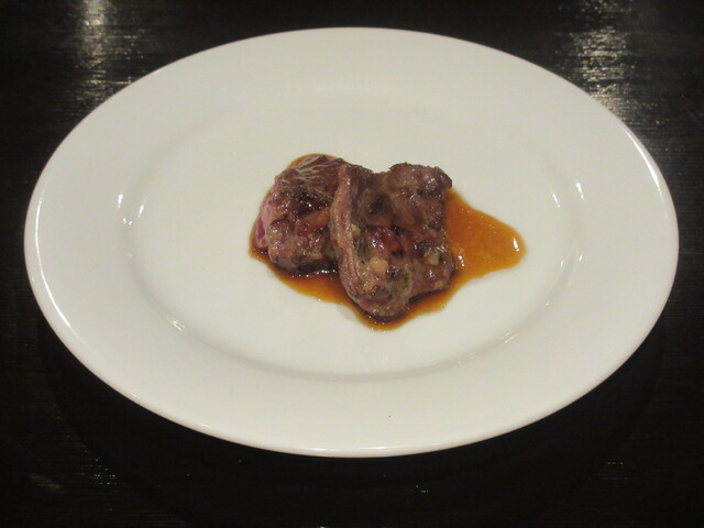 ハバキ(前うで肉)、タレがかけてあり好みで山葵