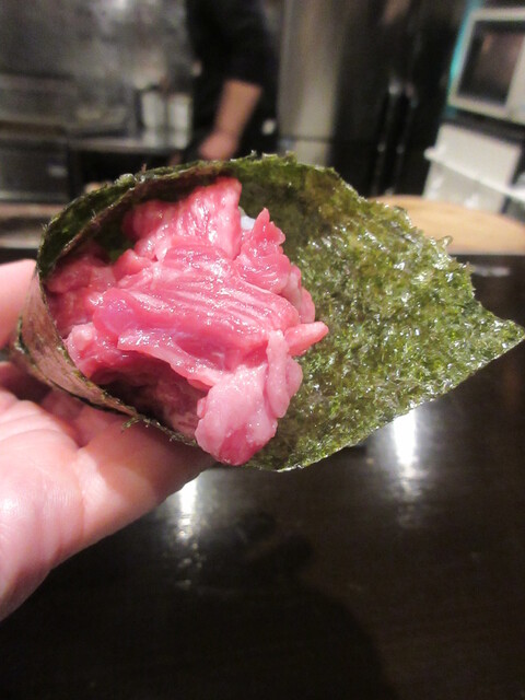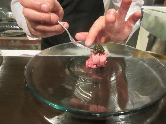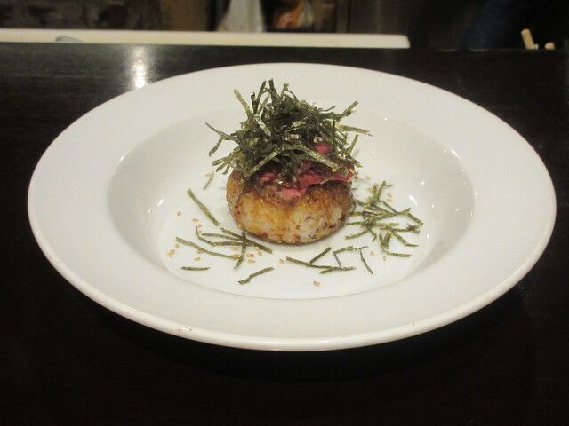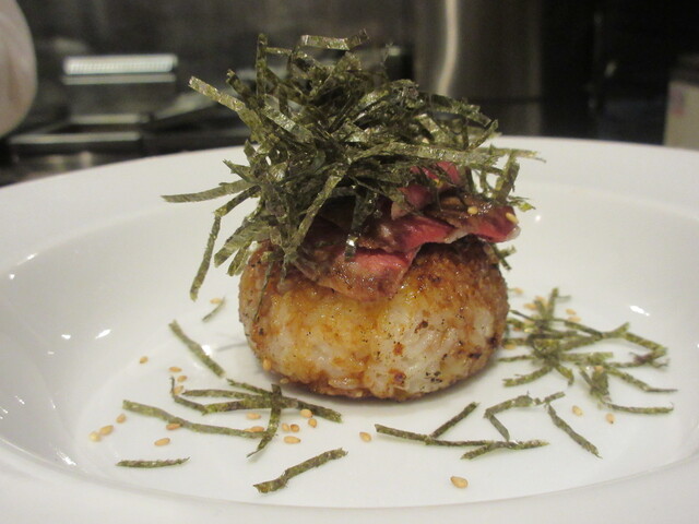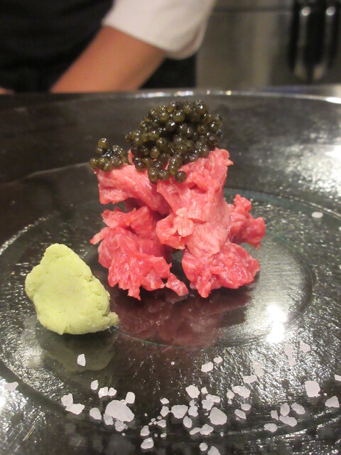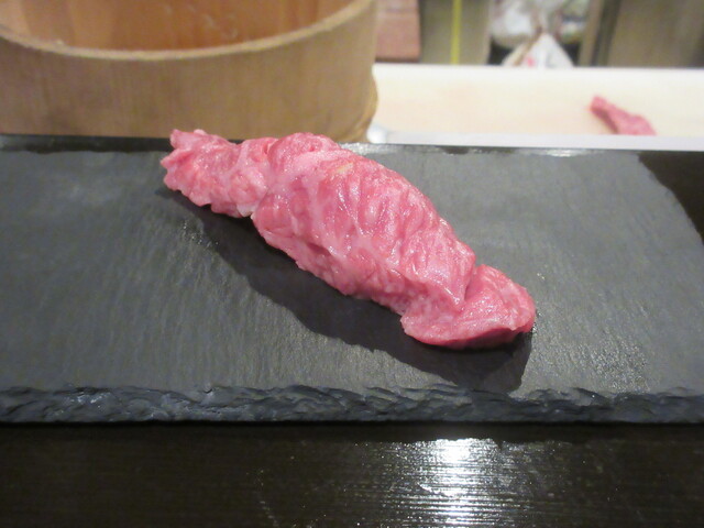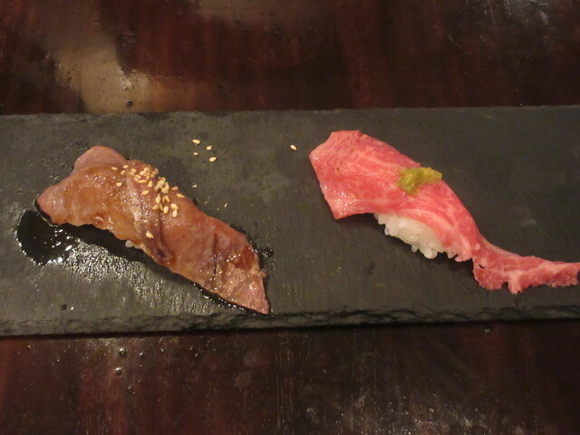 和牛にぎり、炙り(アンチョビ)と生(柚子胡椒)