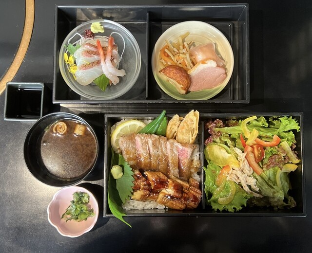 鰻ステーキ重+刺身付き二段重仕上げ 1980円 ステーキ重 1650円 古びたエレベーターに乗り込み4階に到着すると正面に当店せせらぎダイニング。若い時の小西真奈美に似てる... 詳細を見る