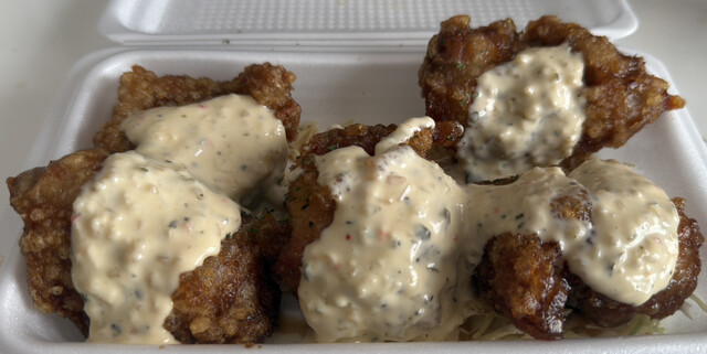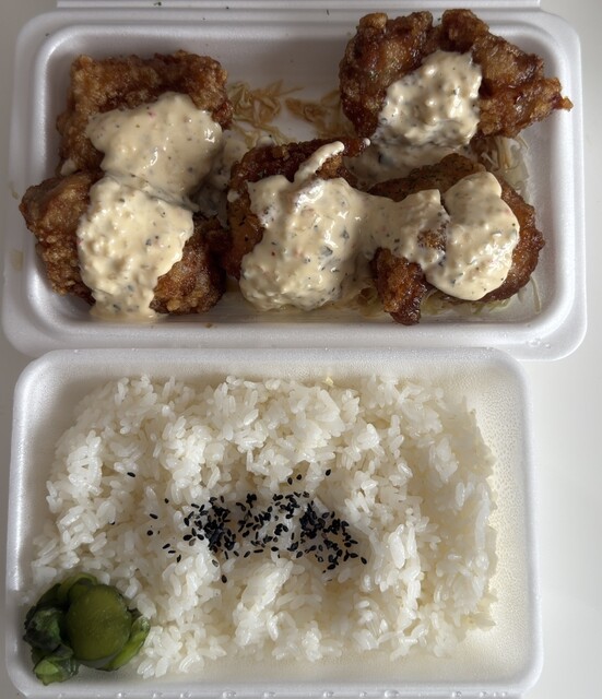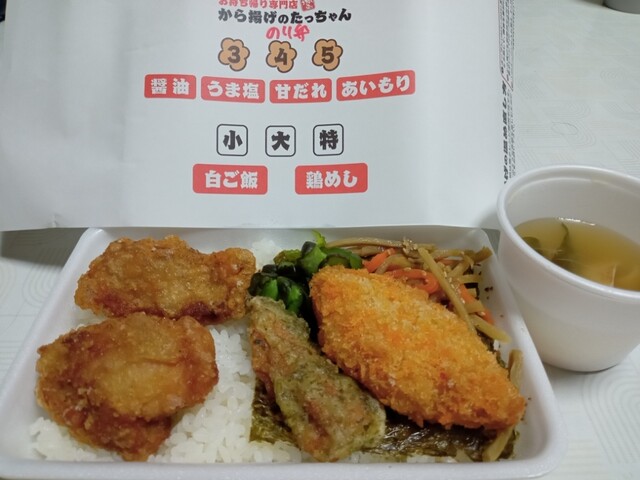 駐車場あり。 餃子のたっちゃんのからあげバージョン(゚∀゚) 初利用。 待ちにベンチがあるのなにげに助かる(*´-`) チキン南蛮弁当(ごはん大盛り)注文。 まえ魚町... 詳細を見る