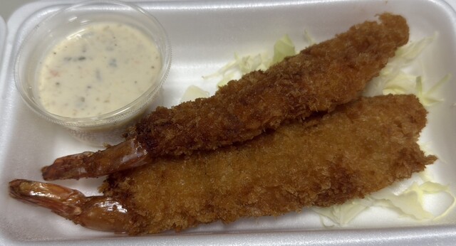 倍の倍って何の事だろと思ってたけど1本のエビフライが2尾のエビを並べて揚げられてるってわけだ。いや訳です。確かに食べ応えはあるんだけど海老その物がもうちょいジューシーな海老ならと思わん訳でもない訳だ。いや訳です。