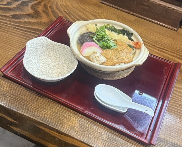 鍋焼きうどん 1100円 北九州グルメ大女王様のインスタで当店の鍋焼きうどんが紹介されてて「うどんもあるんかい!」って叫んだ途端に気絶。気が付いたら目の前に鍋焼きうどんが鎮座... 詳細を見る