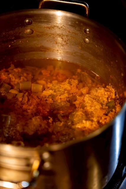 赤鶏のコンソメスープ仕込み中 (by お店)