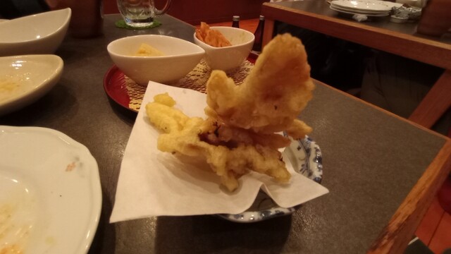 会社の飲み会で利用。入口で靴脱いでくつろげる空間。 お通しは刺身盛りでいいかんじ。 穴子天ぷら、牛すじ煮込み、鴨焼き、おばんざい(煮物)、ラムチョップの香草焼など注文。 どれ... 詳細を見る