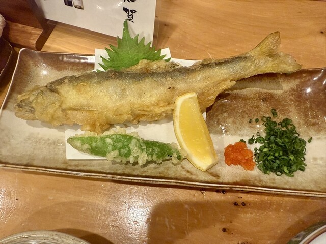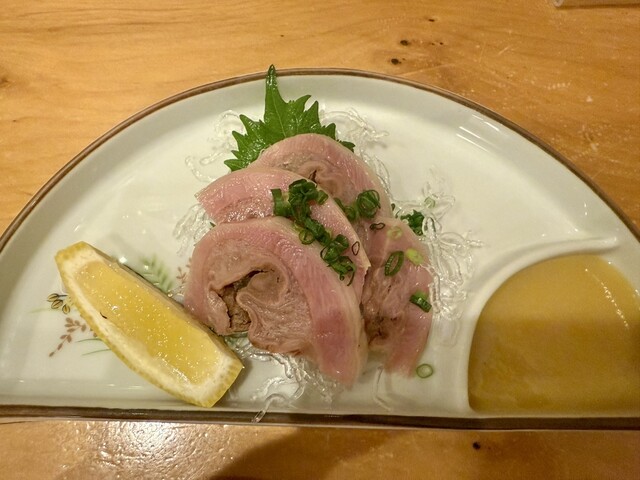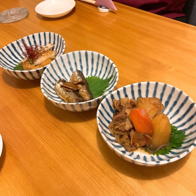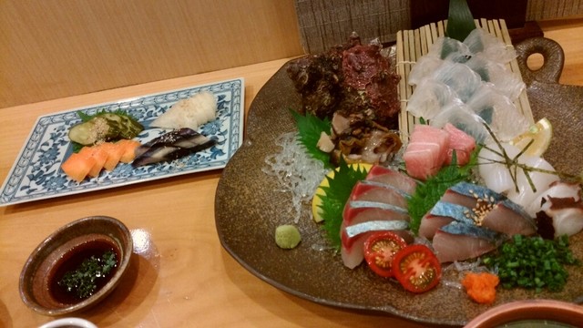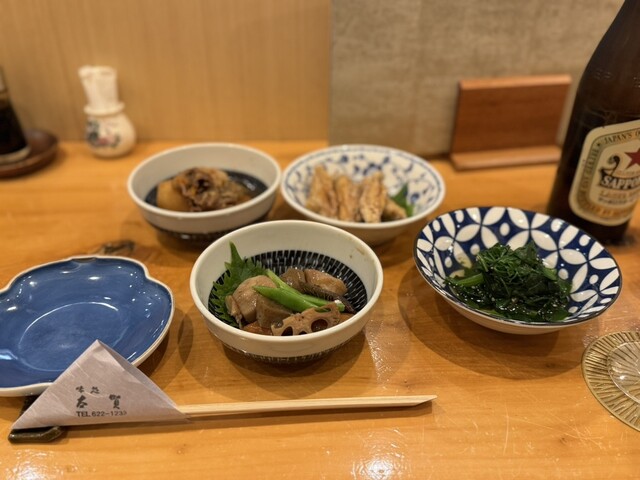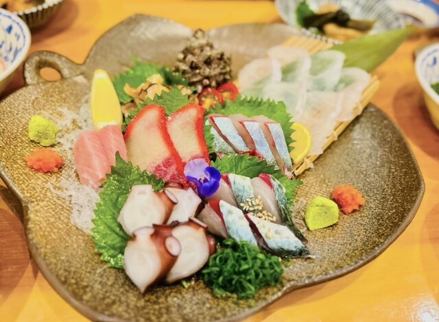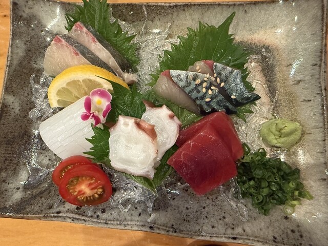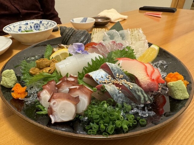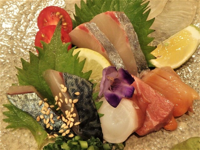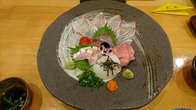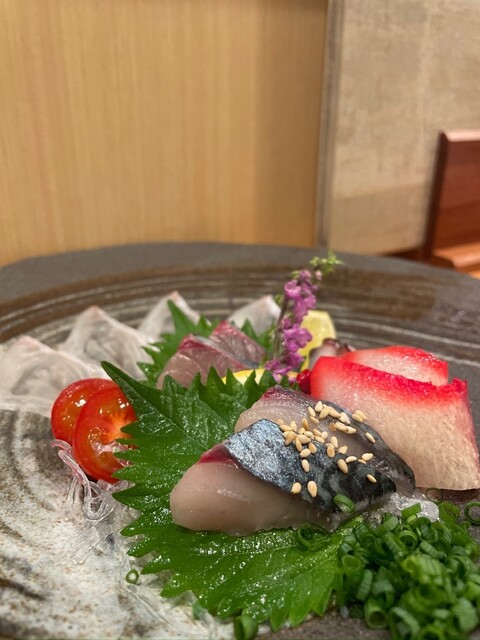 黒崎駅の昭和チックな商店街の路地裏の分かりにくい場所にあります。この地域で勤務するドクターから料理の質に定評がある人気店と紹介され、友人と二人で訪問。飲み放題込みで1万円のコースです。まず、お刺身の鮮...