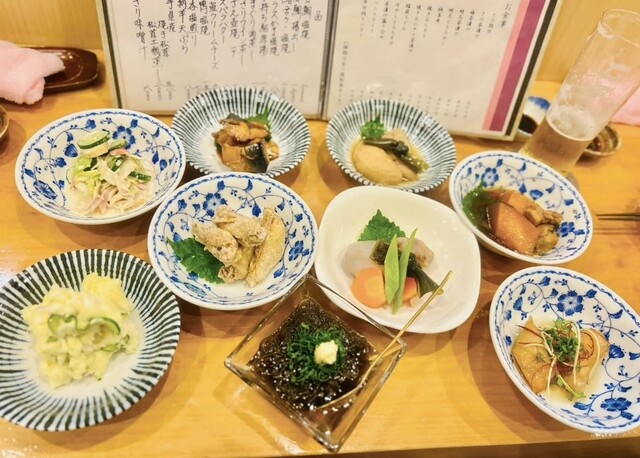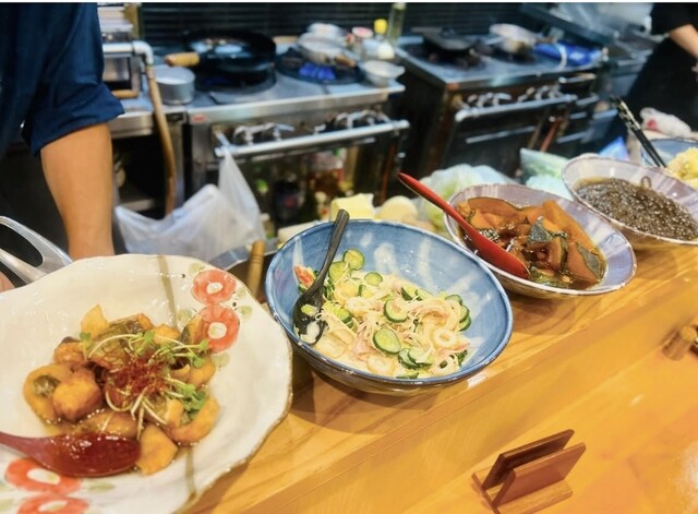 メニューは刺身や煮物、天ぷらなど本格和食から、ホルモン鉄板、エリンギ炒めのような居酒屋メニューまで。ど...