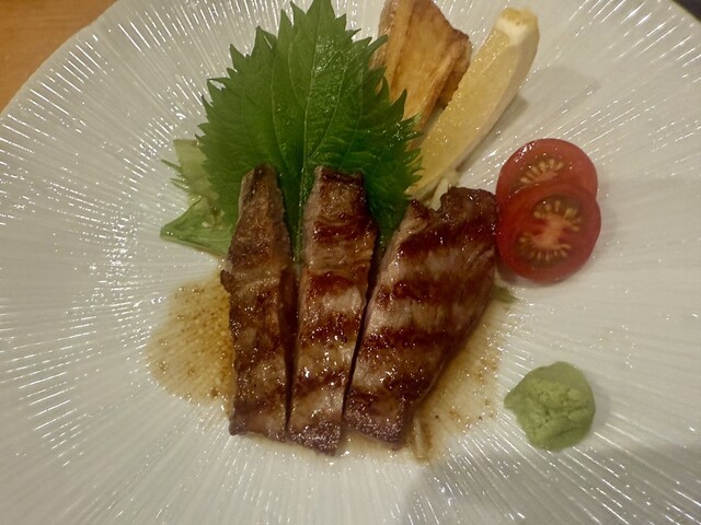 ここはプライベートも接待にも良いお店。お任せコースなら飲み放題付けて7000円税込から。カウンターと座敷あり。予約は必要ですね。4名から10名ちょいまで座敷で座れます。刺身も焼き物、締めのデザート...