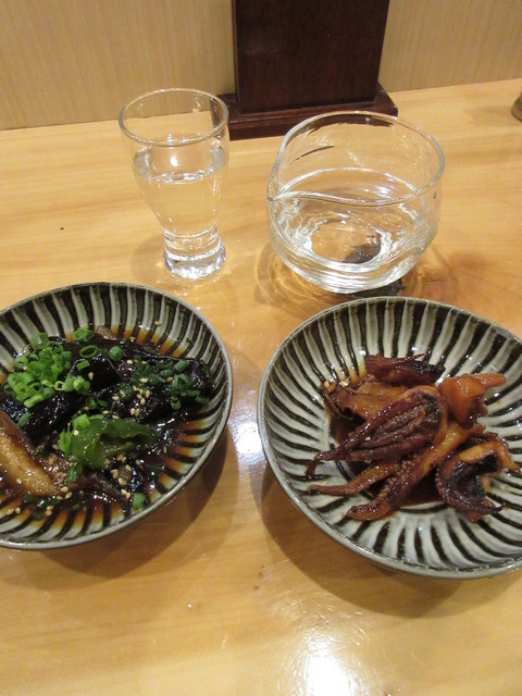 お通しはみな違うもので、自分はかぼちゃの煮物。かつおだしが効いている。