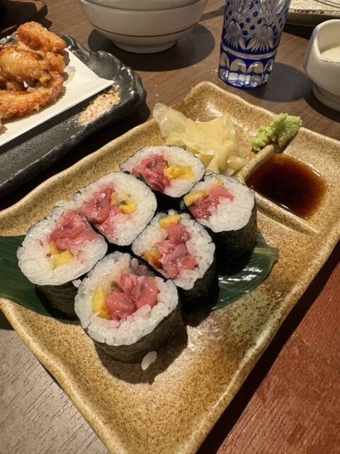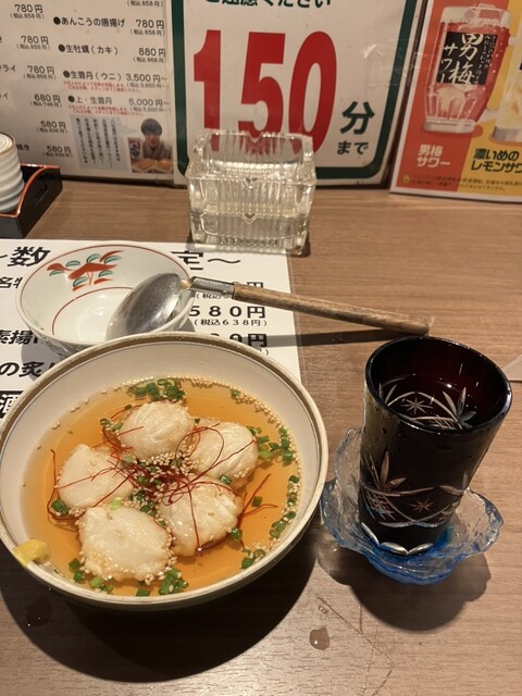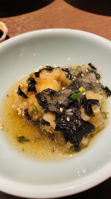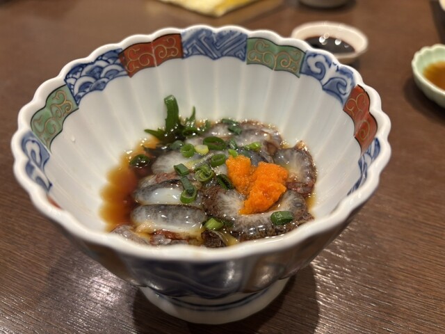 まずは、鶏のタタキ。薬味が素晴らしかったです。ミョウガにおろし生姜、ワサビもおろしてありました。この手の居酒屋だとミョウガやすったワサビは殆ど記憶にないので、素晴らしいと思います。タコぶつ。いや、時季なんですかね。ほのかな香りと噛み締めた時の旨味が良い感じで、美味し...