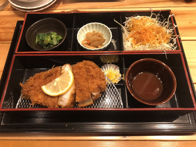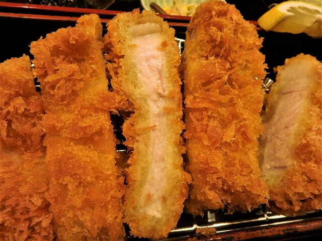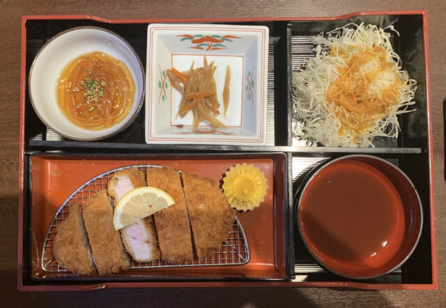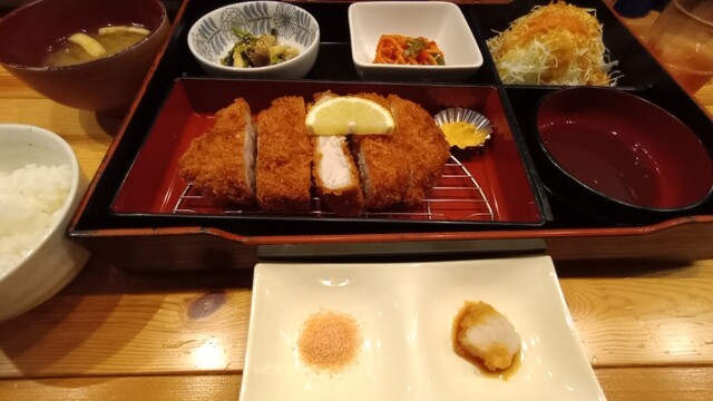 とんかつ気分でランチに利用。ロースカツ150g御膳。ご飯半分で。 しばらくしてサーブ。厚めのとんかつに小鉢2種、キャベツ。ソース、塩、おろしポン酢が調味料として一緒に。机の上には... 詳細を見る