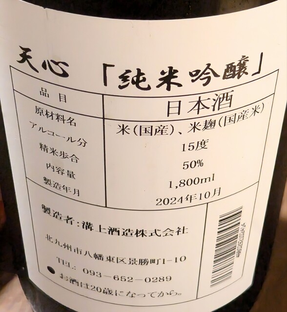 天心 純米吟醸 1合¥750
