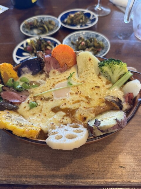 あくまで自分の食べ方ですが、周りの野菜1つずつと一緒に真ん中のカレーを食べ崩していく、そんなイメージです。