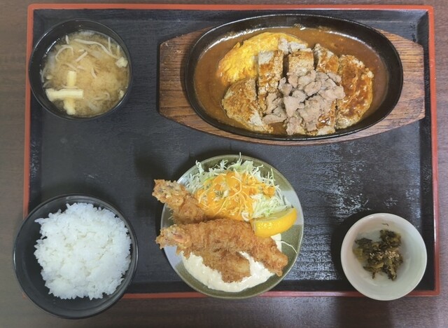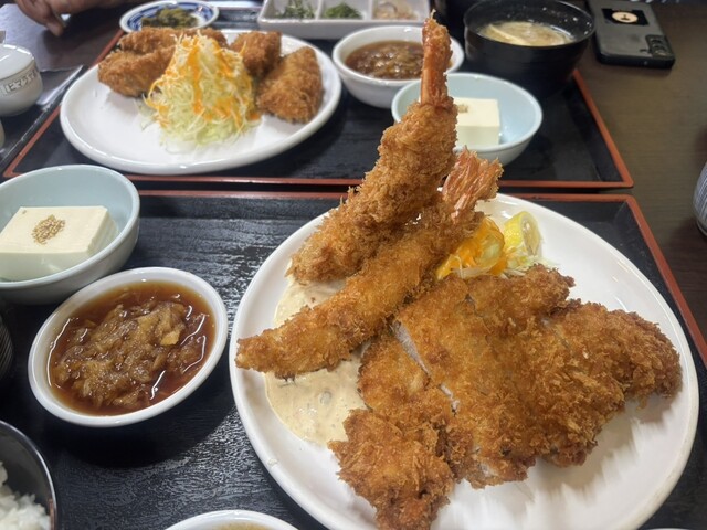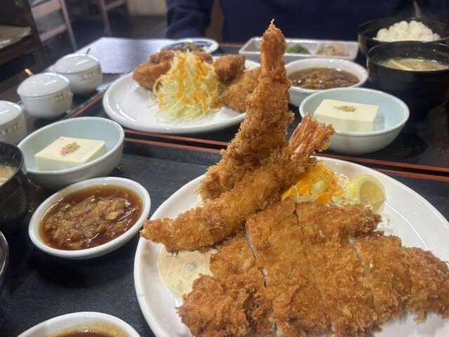 11:15来店、先客数人グッデイ前。テーブル席に着座し自分は壁メニューの脂身の多いロースカツ、組員Bが海老ハンバーグ定...
