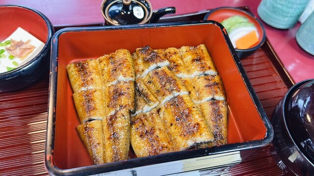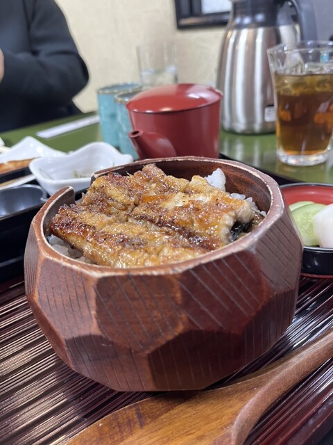 サラダと肝吸いと香の物が付いている定食です。 うなぎはもう少しふんわりしたのを期待していました。 肝吸いは小さいながら肝が入ってます。 お昼ですがお客さんで駐車場は一般で繁盛... 詳細を見る