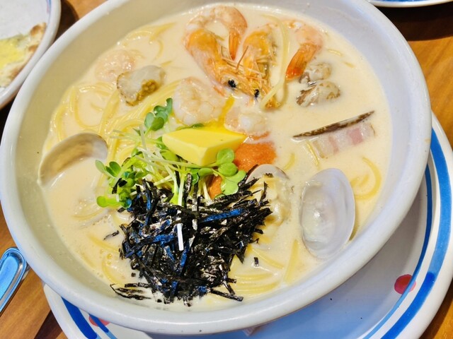 エビの明太子クリームスープパスタ 1,190円(税込1,309円) 寒いのでアツアツのスープがしみた(笑) 粘度の弱いサラサラ寄りスープ。 塩分も程よく、スープも飲みつつ食べ... 詳細を見る
