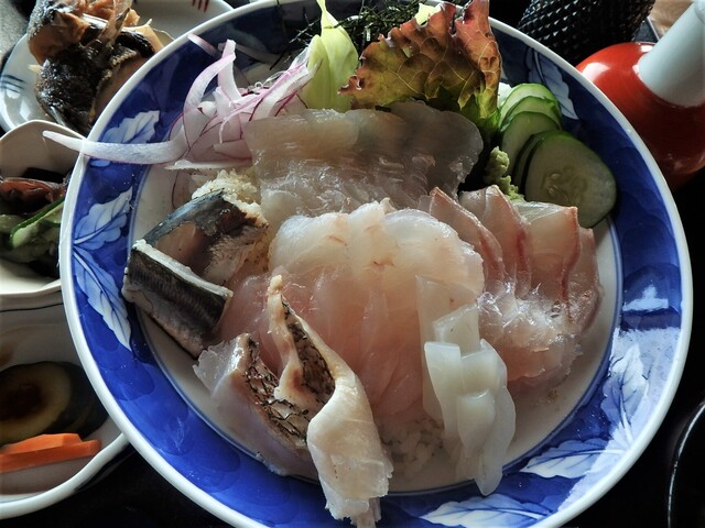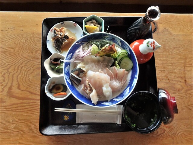 日曜日の11:45ころ訪問。 カウンター席からは目の前の岩屋海水浴場が一望。 ランチメニューからおすすめマークの付いてる以下注文。 ◆海鮮丼(小鉢、漬物、汁物、コーヒー付... 詳細を見る