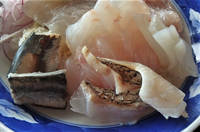 鯵は軽く酢で〆てるけどちょっと魚臭いかな。