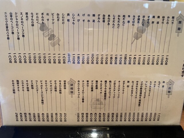 ▷焼鳥 各種(豚バラ、かしわ、砂ずり、せせり、ぼんじり、あらびき、ピーマン)...