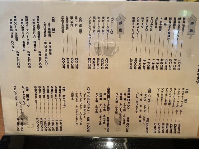 | ドリンク | 日本酒あり、焼酎あり、ワインあり、カクテルあり |