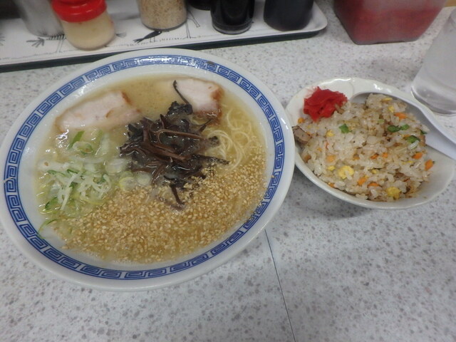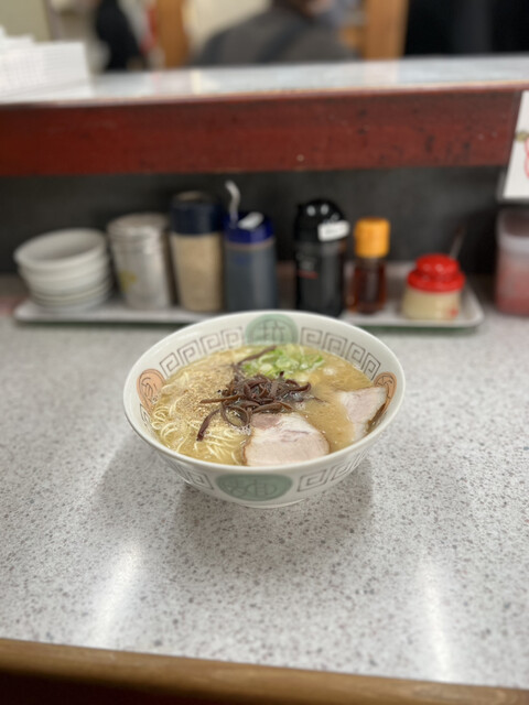 昼食で訪問しました。店内は満員でしたが、5分ぐらい待つと案内されました。 『ラーメン(ばりかた):¥750』&『かしわおにぎり(1個);¥100』を注文しました。 5分... 詳細を見る