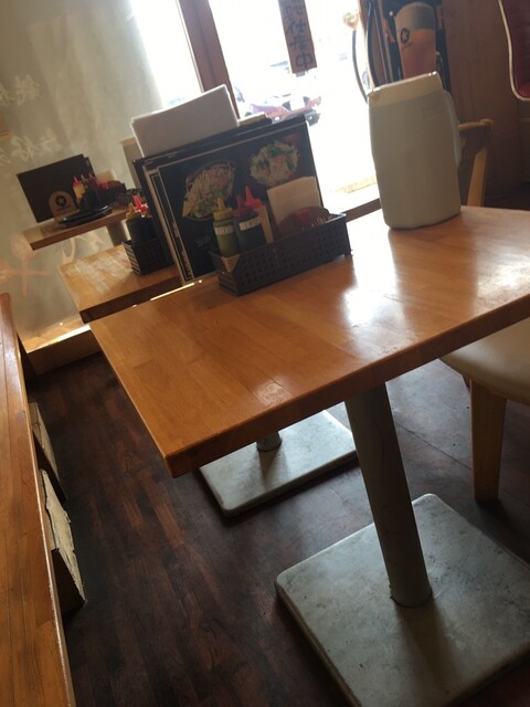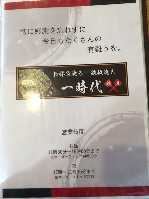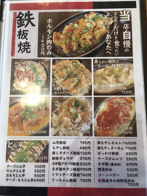 で、見たら鉄板前カウンターは2席のみで、お一人ご常連っぽい先客さんがおられ、まだ下げられてない鉄皿がテーブルの上にあり、どの席でも熱々で食べられるんだろうから、お一人様ながらワタシは2人掛けテーブル席へと陣取りました。