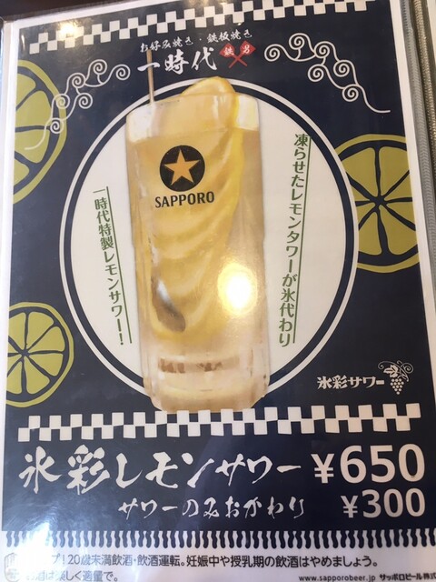 その女性にメニュー表の広島焼について訊くと、小は麺半玉、中が1玉、イカは生イカでスルメがイカ天とのことですから、両方とも後者でお願いしました。