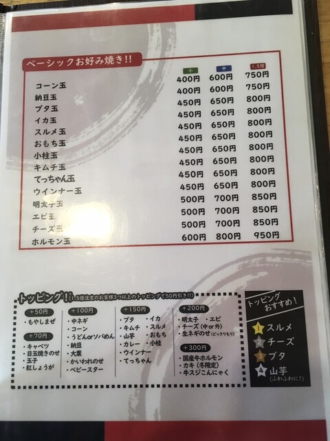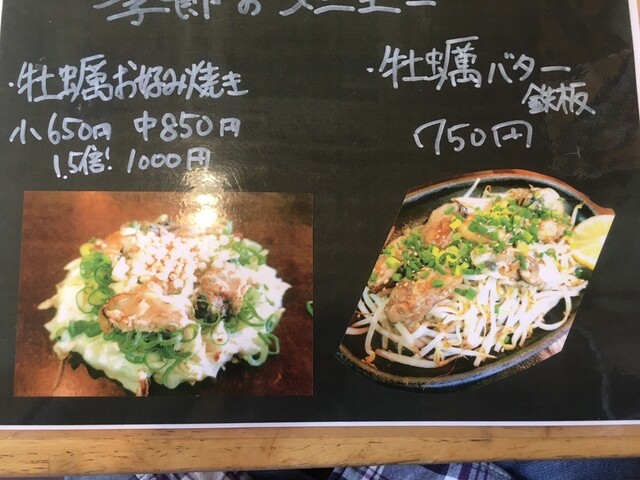 そのように店内は、鉄板前カウンターは2席だけ、2人掛けテーブル席が4卓だけど2卓は引っ付けて4人掛けみたいにしてて、他に4人掛けテーブル席が2卓ほど有りました。
