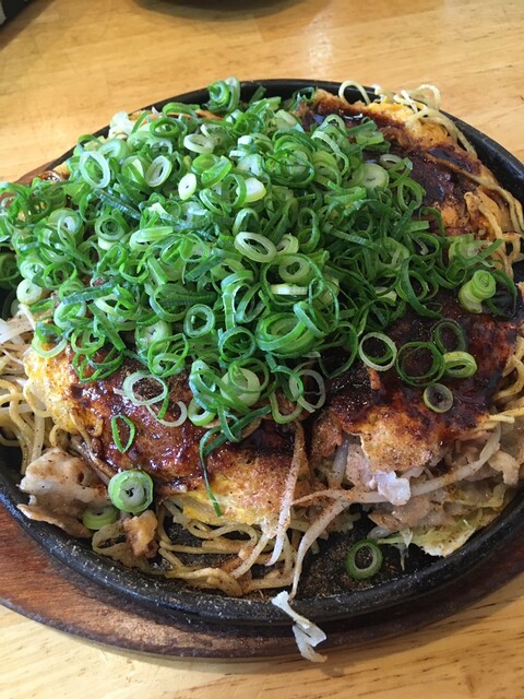 ただ、唯一の問題点は鉄皿で、お好み焼きのサイズと合ってないからギチギチで、たぶん皆さん箸で召し上がるからなんだろうけど、ヘラを使うワタシなど、スっと入れたら崩れやすく、テーブル上に溢れちゃいそうなんで厄介っちゃ厄介 ⤵︎