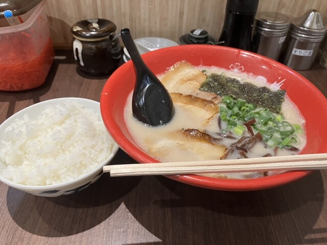 濃厚ラーメンが食べたくなって☆ んで、通し営業がとても有難いお店! 濃厚ラーメン トロッとした豚骨の旨み全開のスープ。細麺のカタが合う。 卓上アイテムも素晴らしく、けっ... 詳細を見る