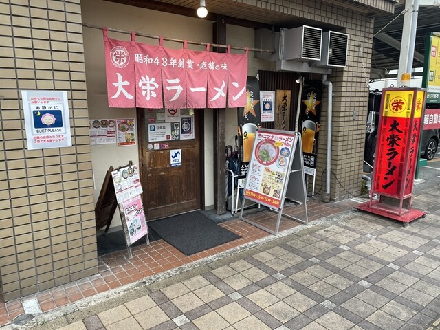 カーシェアを西鉄久留米駅で返却し、西へ向かって徒歩で大栄ラーメンへ。