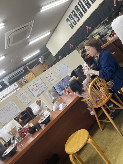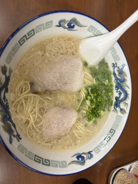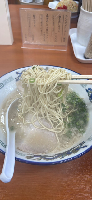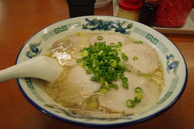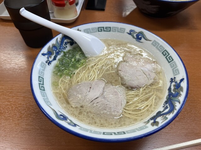 何気に久留米でラーメンを食べるのが初めてだったので、調べてから評価の高かったこちらのお店に行ってみることにしました。開店前から長蛇の列でどうにかオープンと同時に席に着くことは出来ました。先に並んでいた方々は、着席と同時にラーメンがテーブルにつくように準備をされていた様子で私たちのテーブルにラーメンが来る前に替え玉の注文...