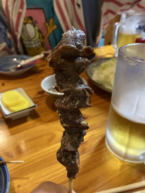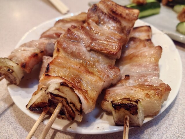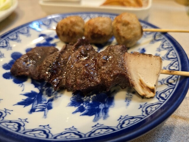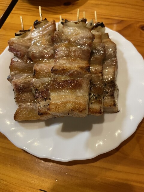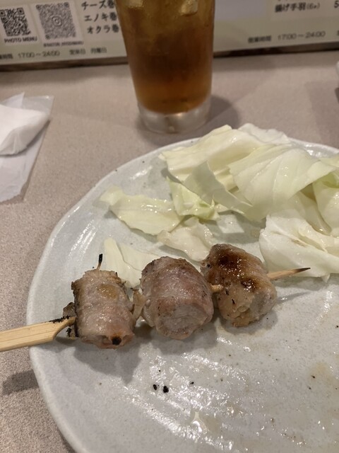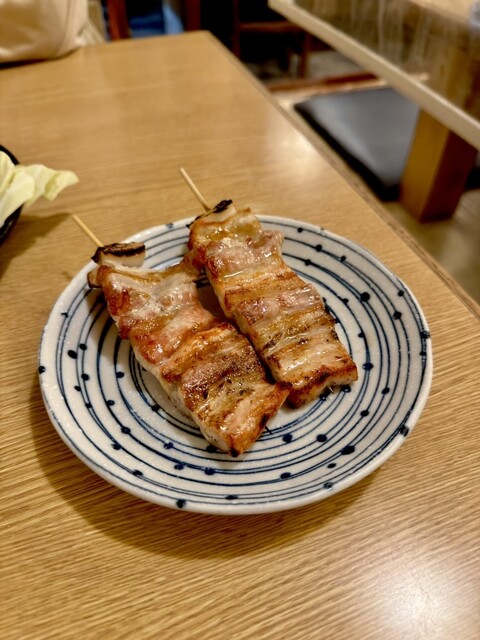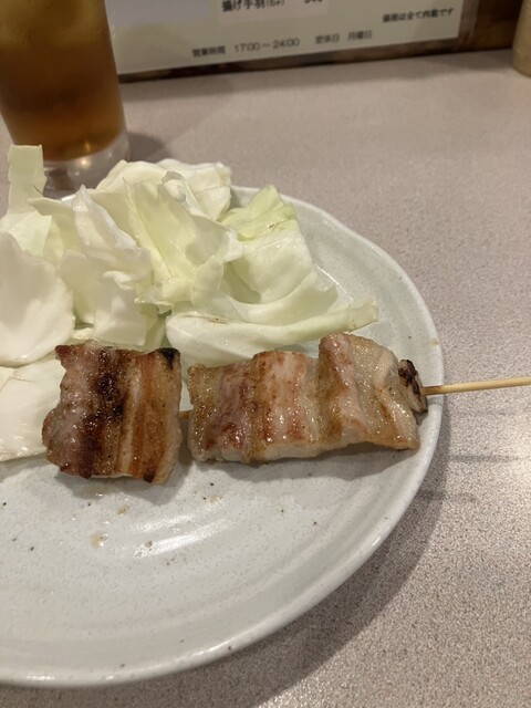 3軒目で訪問。21時過ぎだったため、ダルムは売り切れのため食べれず。どの串も安価な値段で、ついつい注文しちゃいます。お通しのキャベツは食べ放題。ドレッシングもあり、つまみにいくらでも食べれます。中でも...