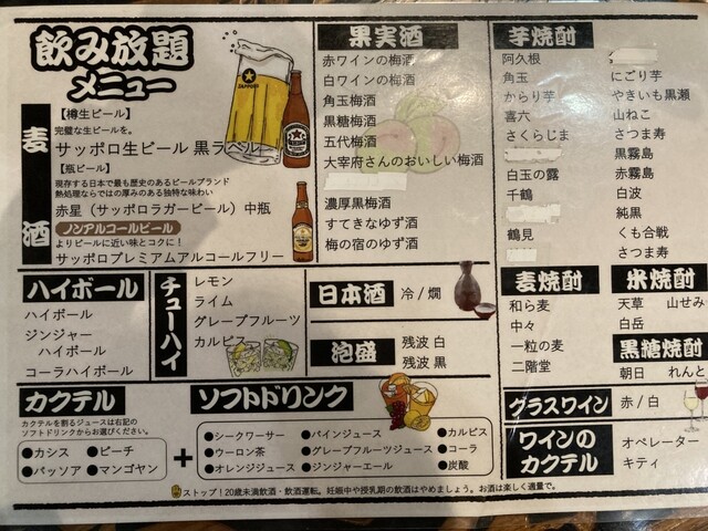 | ドリンク | 日本酒あり、焼酎あり、ワインあり、カクテルあり、日本酒にこだわる、焼酎にこだわる、ワインにこだわる、カクテルにこだわる |